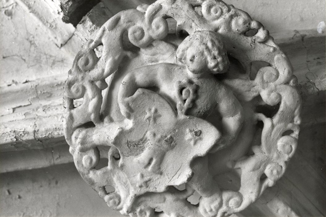 Cet oratoire est en fait une pièce en surplomb au-dessus d'une descente de cave. Cette pièce allongée est éclairée, du côté de l'accès de la cave, par une fenêtre guichet à chambranle chanfreiné et bassoir en saillie. La pièce est voûtée d'ogives à clef centrale pendante blasonnée avec une tour crénelée ouverte accompagnée de trois étoiles. Une crosse à volute est placée en pal derrière l'écu. Un ange porte cet écu qui est ceint d'une couronne extérieure à rinceaux et volute. Les quatre nervures de la croisée d'ogives retombent, ainsi que les arcs formerets brisés qui déchargent les murs, sur des culots empâtés soutenus par des anges sexués, variés dans leurs attitudes. Aucun document ne mentionne cet édifice qui peut être daté, par son style, de la période qui a suivi le grand tremblement de terre de 1490. L'identification en tant qu'oratoire n'est qu'une supposition, mais la crosse figurée sur la clef de voûte indique que le commanditaire en était soit un abbé, soit un évêque.