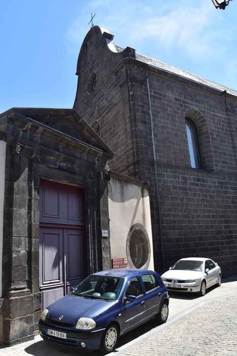 L'ancien couvent des Ursulines occupe l'emplacement du Palais-Vieux de Montferrand, où se tenait la cour des Aides depuis 1557. L'édit d'unification de Clermont et Montferrand, en 1630, ayant obligé cette juridiction à se transporter à Clermont, les locaux se trouvèrent libres. Ils se composaient alors de divers corps de logis dont les fondations proches des anciens remparts remontaient au 12e siècle. En 1673, le collège des Jésuites, qui occupait une autre partie du Palais-Vieux, fut lui aussi transféré à Clermont. Les Ursulines, arrivées de Clermont en 1637, purent alors s'étendre. La première pierre de la chapelle est posée en 1702. En 1723, l'ébéniste Sureau y pose le retable baroque. Pendant la Révolution, certaines religieuses dispersées continuèrent leur activité éducatrice, alors que les locaux étaient vendus comme biens nationaux. Au 20e siècle, le regroupement des séminaires à Clermont transforme le couvent en gendarmerie. £L'ensemble des bâtiments monastiques regroupe des constructions allant du 12e au 19e siècle. La chapelle ainsi que le portail qui l'accompagne, sont un témoignage intéressant de l'activité architecturale en Auvergne au début du 18e siècle.