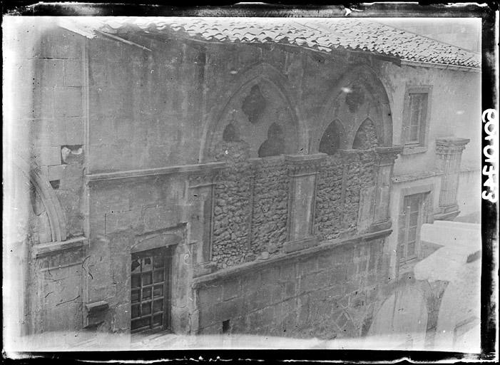 Modifications intérieures aux 15e, 17e et 18e siècles. Une pièce comporte une cheminée du 15e avec écusson en forme de cartouche. La façade se composait, au rez-de-chaussée, de quatre arcades plein-cintre, sans moulures. Au premier étage, cinq fenêtres en arc brisé, avec tymapan découpé reposant sur une colonnette centrale. Les piédroits et les colonnettes sont ornés de chapiteaux avec crochets sculptés et tailloirs. Leurs bases moulurées s'appuient sur un bandeau l'étant également. Les arcs du rez-de-chaussée ont été bouchés et des fenêtres avec grilles de défenses ont été ajoutées aux remplissages au 15e siècle.