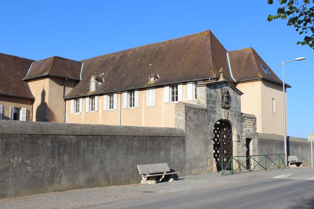 Hospice fondé au milieu du 17e siècle, en exécution du testament du maréchal d'Effiat. Il comprend trois corps de bâtiment à deux niveaux et en retour d'équerre, édifiés dans une architecture simple qu'animent les hautes toitures à quatre pans et les lucarnes, dont certaines ont été prolongées jusqu'au plancher. Un campanile à dôme couronne le bâtiment nord-sud. Du 17e siècle subsistent également le pigeonnier et le portail d'entrée, armorié et daté de 1643.