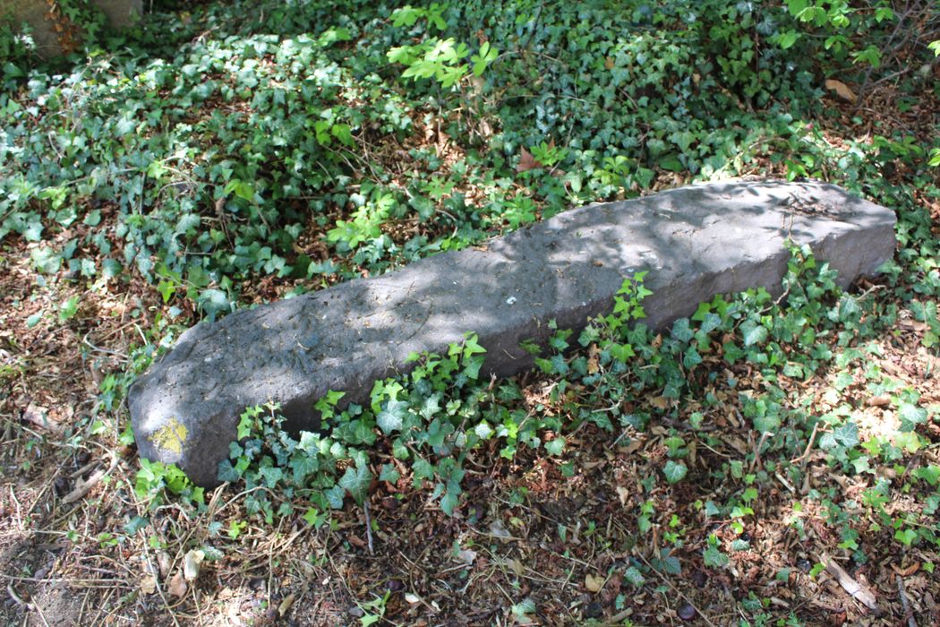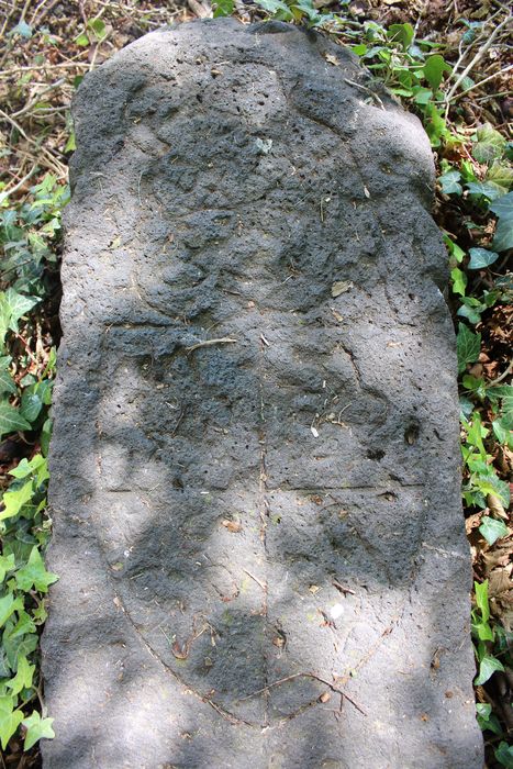 Borne armoriée, anciennement dans le tertre du fossé, actuellement entreposée dans une cave : inscription par arrêté du 7 août 1963