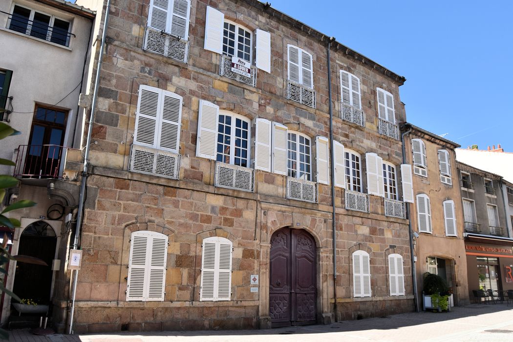 Immeuble construit vers le milieu du 18e siècle pour servir de bureau pour la perception et la conservation des impôts royaux. Cette maison bourgeoise présente deux façades, l'une sur rue traitée sobrement, l'autre sur jardin avec un portique surbaissé formant terrasse. Les façades sont rehaussées d'éléments décoratifs tels que les vantaux de la porte d'entrée, les balcons et la rampe d'escalier en fer forgé. A l'intérieur, salles voûtées aux plafonds ornés de motifs en stuc. Cet immeuble peut être considéré comme un exemple de belle demeure bourgeoise auvergnate du 18e siècle.