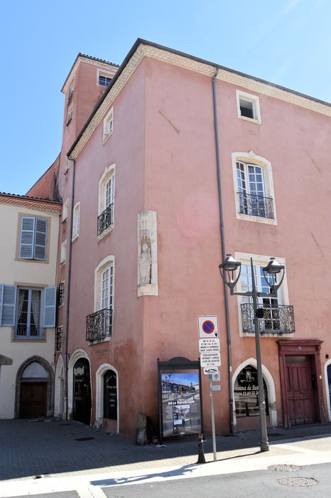 Hôtel de la fin du 15e siècle présentant des éléments médiévaux (tourelle d'escalier, baies du rez-de-chaussée, niche d'angle) , modifié aux 17e siècle et au 18e siècle. La niche sur la façade servait à abriter une statue de Saint-Austremoine. Le décor intérieur, de style classique, avec planchers, huisseries et cheminées, a été conservé. Il s'agit d'un bâtiment de type urbain, caractéristique pour l'histoire de la ville. Cette maison a sans doute été réaménagée à l'époque pour servir de logement à des officiers de justice ou à des fonctionnaires royaux.