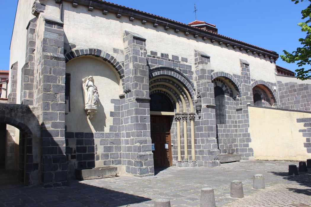Cet édifice est l'église de l'ancien prieuré bénédictin (nef nord). Grégoire de Tours mentionne l'église de Marsat entre 537 et 590. La relique principale du trésor était la ceinture de la Vierge, dont l'existence a été constatée en 1698 par l'évêque de Clermont. Au 7e siècle, l'évêque Saint-Priest y fonda un monastère de femmes qui, en 1165, adopta la règle de Saint-Benoît, dans l'obédience de l'abbaye de Mozat. £L'église se présente sous la forme de deux édifices accolés, une partie romane formant aujourd'hui son collatéral nord dont la construction remonterait au 10e siècle. Le vaisseau, qui est aujourd'hui la nef, date du 13e siècle et possède des voûtes plus récentes. Clocher octogonal des 18e ou 19e siècles.