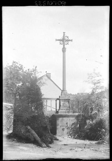 Croix en pierre datée de 1526, représentant d'un côté le Christ, de l'autre la Vierge à l'Enfant. L'ouvrage est complet dans son ensemble, ce qui est rare. Au-dessous de la base de la croix est un piédestal orné d'attributs sur chacune de ses faces. Entre les bras de la croix, motif ornemental de feuillages.