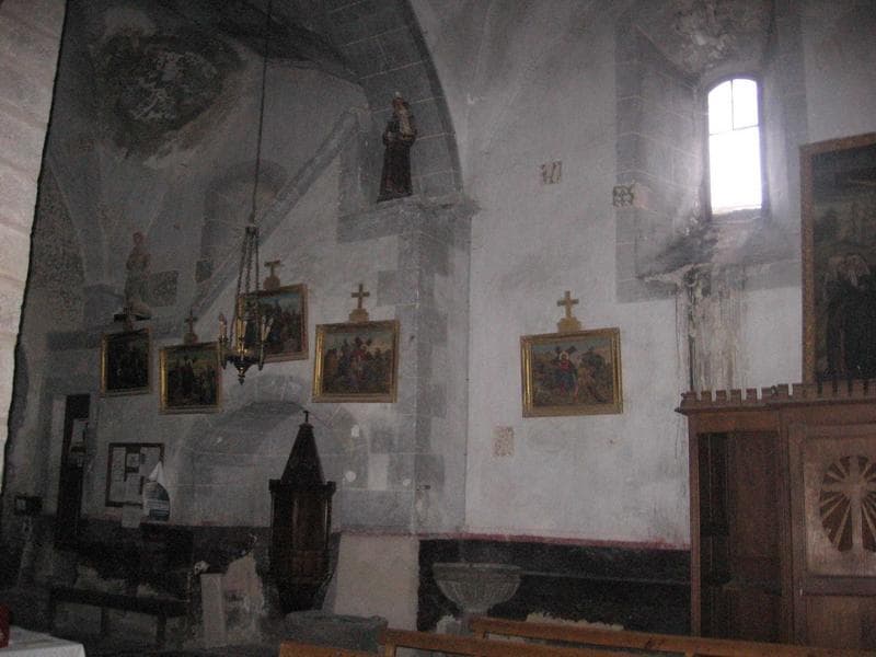 Edifice d'origine romane, d'après les peintures murales retrouvées en 2004. Au 14e siècle, l'église est fortifiée et la chapelle seigneuriale est construite du côté sud. Le choeur a dû être construit au 17e siècle (date 1679 marquée sur une pierre). Au 17e siècle, construction de l'ancienne sacristie, sur le flanc nord. La sacristie actuelle remonte au 19e siècle.