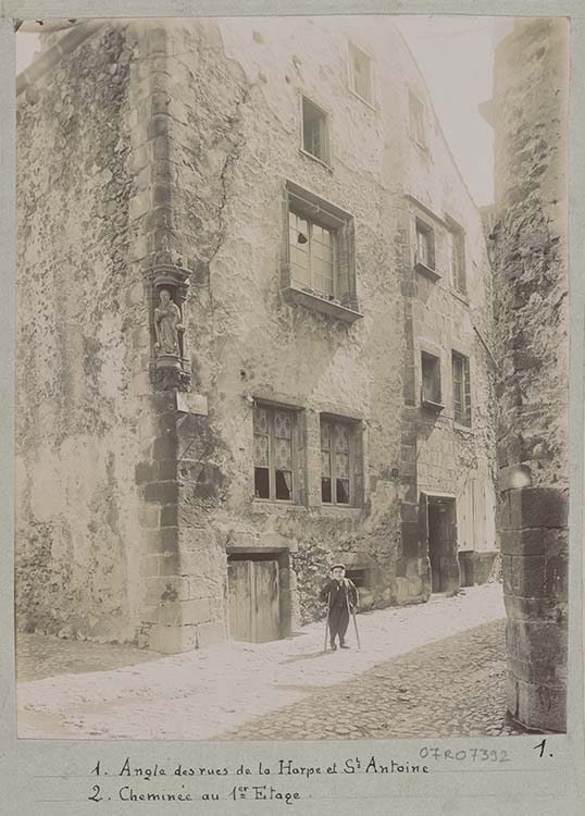 Fenêtres et portes gothiques en façade, ainsi qu'une statuette de Saint-Antoine dans une niche creusée à l'angle. La niche se compose d'un cul-de-lampe, de deux pilastres et d'un dais, son architecture offrant les caractéristiques de la première Renaissance. La porte d'entrée rue de la Harpe est surmontée d'une inscription portant l'année 1534. La porte s'ouvre sur un escalier à vis. A l'intérieur, le rez-de-chaussée présente une pièce avec cheminée moulurée à double courbure en plan au-dessus de chaque jambage. Au centre de la frise est un écusson aux armes du propriétaire originel. Au premier étage, la cheminée, plus simple, porte le nom du propriétaire : Antoine Pandu. Plafonds à solives apparentes.