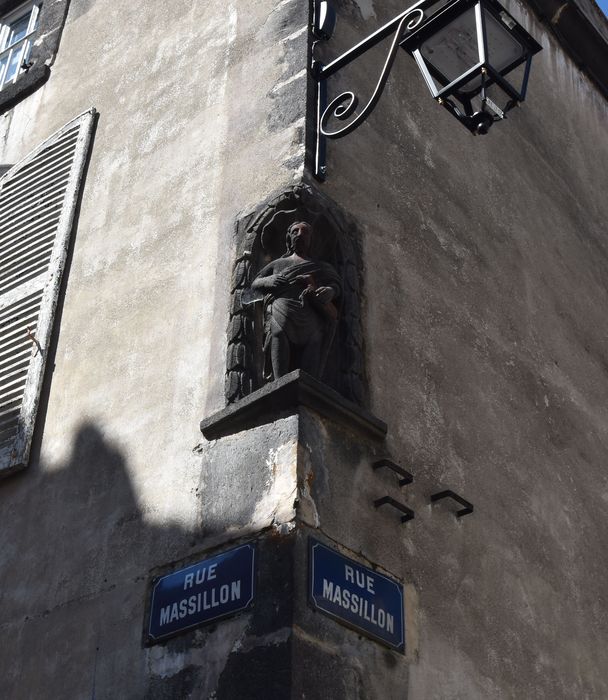 A l'angle de la maison, dans une niche, statue de Saint-Jean-Baptiste qui commémore ici le souvenir de l'antique baptistère Saint-Jean tout proche. Cette maison était sans doute celle du prieur-cure de Saint-Jean. L'oeuvre présente le Précurseur avec ses attributs traditionnels, et se trouve dans une niche ornée d'un encadrement de feuillages qui retombent en tresses. Au-dessus de la niche se lit la date 1722.