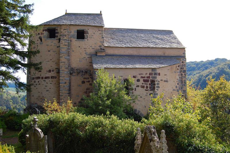 La position sur un piton rocheux de l'édifice laisse supposer qu'il devait s'agir d'une chapelle de pélerinage. L'édifice roman a été transformé soit pendant la guerre de Cent ans, soit pendant les guerres de Religion par surélévation des murs dans un but défensif, en particulier ceux de l'abside. L'église présente une nef unique à laquelle une chapelle et un vestibule ont été ajoutés au 15e siècle. Le choeur est constitué par une travée droite et une abside semi-circulaire.