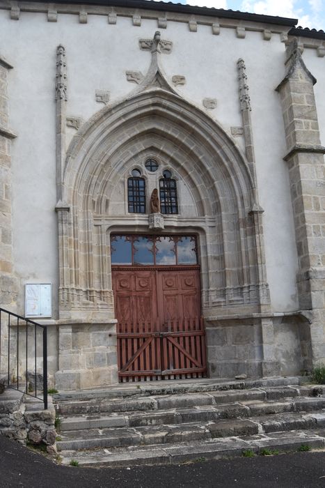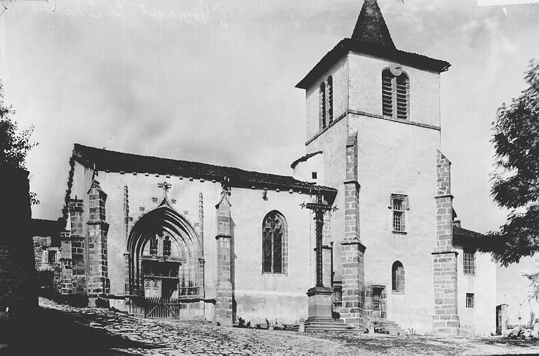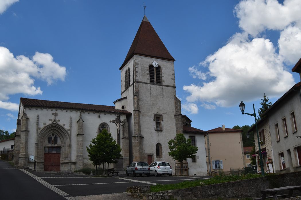 Eglise de la fin du 15e ou du début du 16e siècle, composée d'une nef de trois travées s'ouvrant sur des chapelles de bas-côtés et terminée par un choeur à abside polygonale. Chaque travée de la nef est voûtée d'ogives avec formerets et clefs sculptées. Des arcs doubleaux séparent chaque travée de la nef de la chapelle de bas-côté correspondante, hormis au côté sud de la travée précédant le choeur. Les chapelles latérales sont également voûtées. La façade méridionale s'ouvre par un portail en arc brisé, à trois voussures. Le linteau possède en son milieu une console polygonale sculptée sur chaque face d'une arcature flamboyante en accolade accostée de pinacles. Sur ce support est placée une statuette ancienne. Le tympan est ajouré d'un oculus entre deux baies tréflées. Le clocher d'époque moderne présente un étage ajouré de deux ouvertures géminées à arc en plein cintre et munies d'abat-sons, et se termine par une flèche.