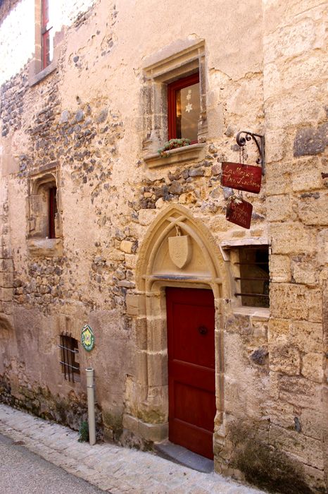 Cet immeuble présente un décrochement sur la rue des Boucheries, peu après le passage de l'ancienne porte fortifiée. Un masque est sculpté à l'angle. La façade longeant la rue présente une tourelle établie vers son milieu mais élevée à une hauteur supérieure. Cette tourelle s'ouvre par une porte à l'encadrement mouluré d'un tore reçu sur bases prismatiques et dont l'arc brisé inscrit un tympan chargé d'un écu portant des armoiries bûchées.