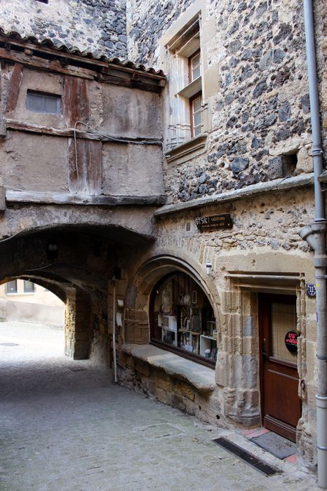 Cette porte était percée au nord-ouest de l'enceinte fortifiée du village, à l'entrée de la rue des Boucheries. L'ouvrage présente un arc brisé surbaissé, chanfreiné, de même que les piédroits. A gauche de la porte, sur l'extérieur, le mur Est est renforcé par un talus. La porte donne accès à un passage couvert dont l'issue présente une façade avec trois ouvertures au rez-de-chaussée (une baie de boutique, une porte rectangulaire à encadrement mouluré de cavets, un portail avec linteau en bois).
