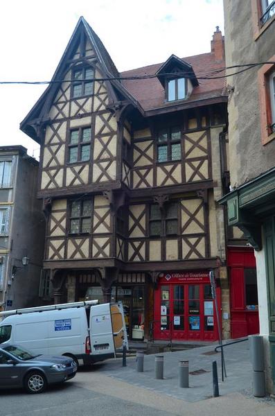 Construction de deux étages en pan de bois portée sur un rez-de-chaussée maçonné ouvert de boutiques, avec partie saillante à l'angle reposant sur deux colonnes isolées. A l'intérieur, l'édifice conserve quelques cheminées datant de son époque de construction.