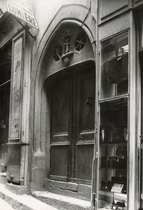 L'entrée de cette maison conserve un tympan caractéristique d'une époque proche de la Renaissance où chacun souhaitait marquer l'entrée de sa maison par un ornement ou un symbole. Le tympan est orné en son milieu d'une niche à arc trilobé. Chaque montant est décoré d'une colonnette engagée reposant sur base prismatique. La petite niche renferme la statuette d'un personnage barbu, drapé dans de longs vêtements, agenouillé et joignant les mains dans une attitude orante. Sous cette niche est sculpté en relief un écu portant une étoile à six branches, un cep de vigne chargé de grappes, et une fleur. De part et d'autre de la niche, ce tympan est percé d'une ouverture circulaire à réseau en étoile à six branches. Le reste de la façade est du 18e siècle.