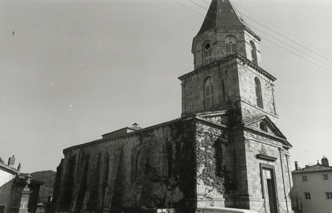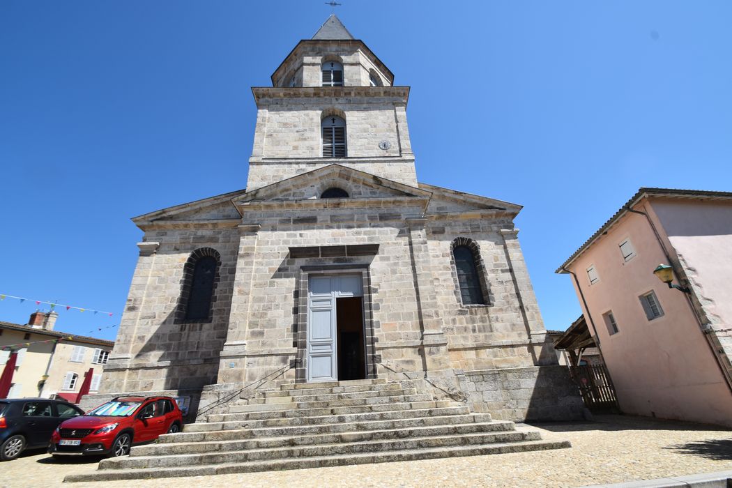 L'église était, avant 1789, une paroisse à la nomination du prieuré de Sauviat. L'édifice était à l'origine totalement roman. Il semble subsister de cette période le vaisseau de la nef et la croisée du transept à coupole. En 1541, messire François de Chazeron fit presque entièrement reconstruire l'église en gothique tardif. La façade occidentale daterait de 1731. A la Révolution, le clocher roman qui dominait la croisée de transept fut abattu. Le clocher actuel, à deux niveaux, carré et hexagonal, fut construit en 1845. La coupole allongée, percée d'un oculus zénithal, repose sur quatre piles qui supportent quatre arcs diaphragmes brisés retombant sur des colonnes adossées par l'intermédiaire de chapiteaux ornés ou historiés. Des trompes plein-cintre rattrapent la différence de plan.