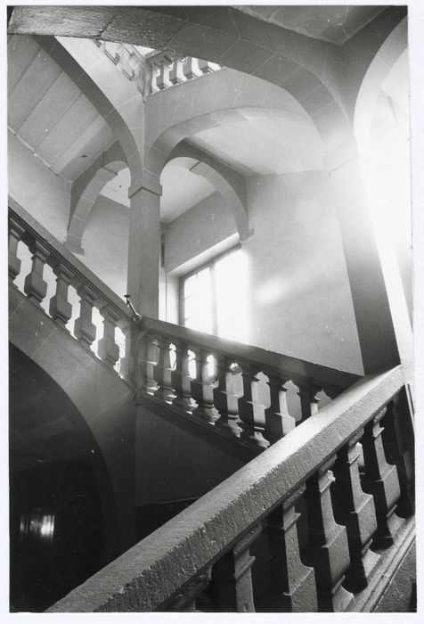 escalier d'honneur et sa cage d'escalier ; deux pièces donnant sur cette cage d'escalier au rez-de-chaussée et au 1er étage, avec leurs cheminées, lambris et boiseries (cad. HZ 11) : inscription par arrêté du 21 août 1989