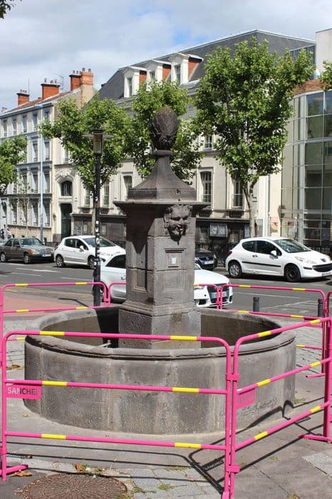 La fontaine de la Flèche doit son nom à la corporation des chevaliers de la Flèche installés depuis 1737 autour de la cour des archers. Elle se compose d'un bassin circulaire entourant un fût central carré amorti par une pomme de pin posée sur un socle mouluré en cavet renversé. Chaque face du fût est évidée en table à bords moulurés. Le sommet des faces nord et sud est orné d'un masque par la bouche duquel jaillit l'eau. Cette fontaine est l'une des trois fontaines isolées datant de l'Ancien Régime que conserve Clermont.