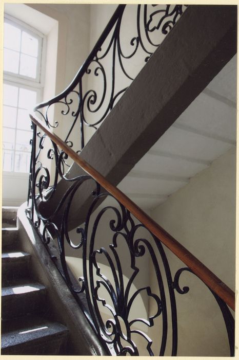 Les façades et toitures ; la cage d'escalier avec sa rampe en fer forgé (cad. HY 252) : inscription par arrêté du 23 mars 1990