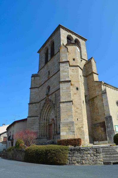 Cet édifice, reconstruit de 1899 à 1902, conserve un clocher-porche du 15e siècle exemplaire de cette région du Livradois : tour carrée, massive, épaulée par d'énormes contreforts angulaires à ressauts larmiers et chaperon en bâtière. Le portail à voussures et ébrasements garnis de niches (culots en coquilles servant de support autrefois pour des statues) est amorti par un gâble en accolade et des pinacles ornés de choux frisés. L'église primitive se composait, outre le clocher, d'un collatéral nord, d'une nef à deux chapelles latérales au sud, d'un choeur carré ouvrant sur une abside polygonale. £L'agrandissement de Barthélémy Sauzet reprend les modèles traditionnels de la région : piliers, chapiteaux, voûtes et remplages des baies. L'ensemble des fenêtres sont garnies de vitraux signés Francis Grand et Baratte.