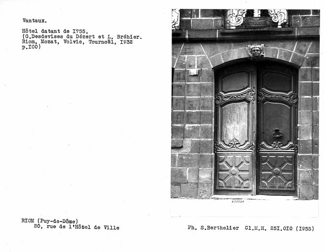 Auvergne-Rhône-Alpes ; Puy-de-Dôme (63) ; Riom ; 20 rue de l'Hôtel-de-Ville