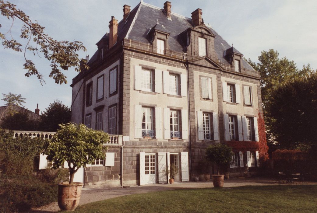 Château, y compris les pièces suivantes avec leur décor : escalier, chambre à alcôve, salle de bains avec ses installations, salon à plafond peint, grand salon lambrissé à plafond à caissons ; jardin avec son mur de clôture, son portail d'entrée et son orangerie (cad. AL 131, 139) : inscription par arrêté du 7 octobre 1991