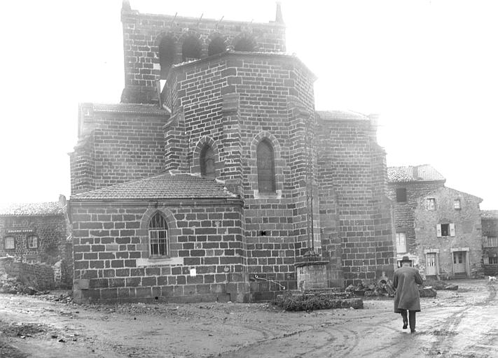 Eglise romane, considérablement remaniée. L'église a été revoûtée d'ogives à la fin du 13e ou au début du 14e siècle. L'abside est complètement refaite. La façade présente un grand intérêt par la richesse de son ornementation rare en Velay. Le porche comporte dix colonnettes tronconiques avec astragales prises dans le fût et à chapiteaux soignés. Au-dessus, se trouve une grande archivolte décorée de lobes et entourée d'une moulure ornée d'animaux et de personnages. Trois arcatures meublent la partie supérieure de la façade. Celle du milieu est percée d'une baie légèrement remaniée.