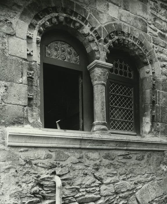 La fenêtre géminée à une seule colonnette centrale subsistant dans cet édifice, reste de l'ancien château des seigneurs de Mercoeur, se veut un détail d'architecture civile du 12e siècle. Les deux archivoltes sont ornées d'un double rang de fleurettes et de plusieurs petites têtes.