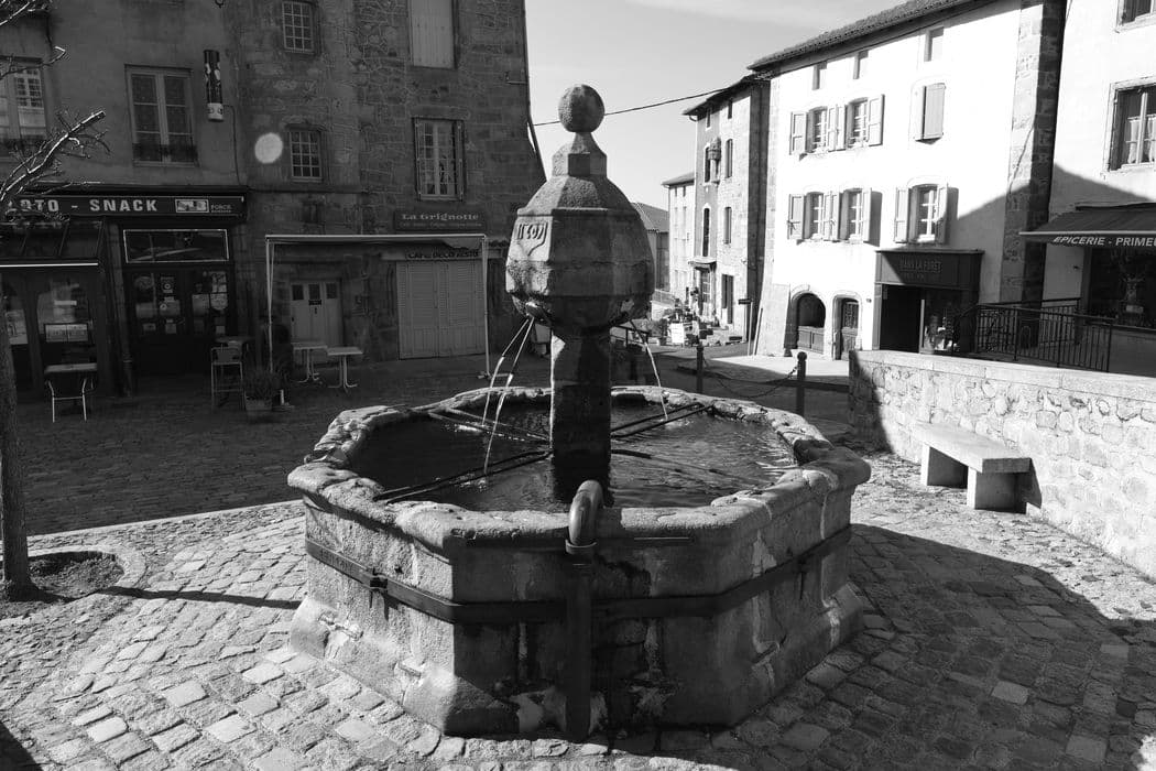 Auvergne-Rhône-Alpes ; Haute-Loire (43) ; La Chaise-Dieu ; place de la Fontaine