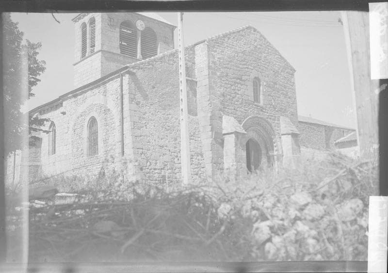 L'église a été reconstruite au 16e siècle, en conservant un portail du 12e siècle, provenant d'un ancien porche à l'origine situé au midi, et qui a été réédifié sur le pignon ouest. Ce porche comporte deux archivoltes légèrement ogives, l'une à moulures toriques, l'autre décorée de bâtons rompus et d'un tore de feuilles. Ces archivoltes reposent sur des colonnettes ornées de chapiteaux. La porte paraît dater du 15e siècle. Elle est ornée de pentures forgées d'époque. Le vantail ouvrant est fermé par un verrou de la même époque, orné d'une poignée figurant un poisson.