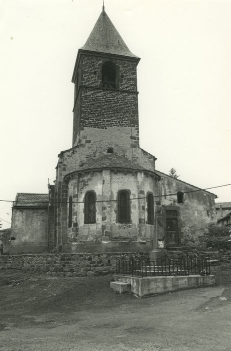 L'église, du 12e siècle, est de plan irrégulier dérivé de la croix latine. Un collatéral nord semble avoir été ajouté au 17e siècle, puis une chapelle sud au 19e. Choeur à une travée sous coupole de plan barlong articulé à une abside voûtée en cul-de-four. Chaque travée de nef s'organise de façon originale en deux arcs plein cintre jumelés à retombées externes sur piédroits, à retombées internes sur colonne circulaire engagée originellement dans le mur gouttereau. Lors des adjonctions des collatéraux, ces colonnes sont devenues indépendantes mais doublées par un arc plus bas et légèrement décentré. A l'intérieur, le décor se concentre sur les culots figurés des pendentifs de la coupole, les chapiteaux à figures et décor pseudo végétal de l'abside, les motifs ornementaux à répétition, les besants sur le bahut.