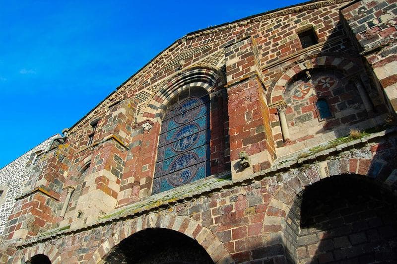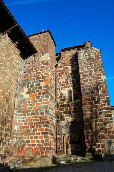 Vers 680, Calminius, gouverneur d'Auvergne, bâtit un oratoire dédié à Saint-Pierre sur sa propriété du Villard, certainement à l'emplacement de l'actuel Monastier, au nord de l'église. Cet oratoire, ruiné et trop petit, est abandonné. Vulfade, abbé du Monastier de 950 à 982, entreprend une nouvelle construction au sud de l'oratoire. L'édifice, construit sur de mauvaises fondations, est reconstruit à partir de 1086 et s'achève dans la première moitié du 12e siècle. Fin 15e - début 16e siècle, réfection des voûtes de l'église, construction de la grande tour des cloches, de l'escalier devant l'église et du jubé. La règle primitivement suivie dans le monastère est celle de Saint-Honorat, remplacée ensuite par celle de Saint-Benoît. Le cloître est rebâti vers le milieu du 18e siècle. Quelques restaurations à la fin du 19e siècle. L'église était auparavant dédiée à saint Chaffre.