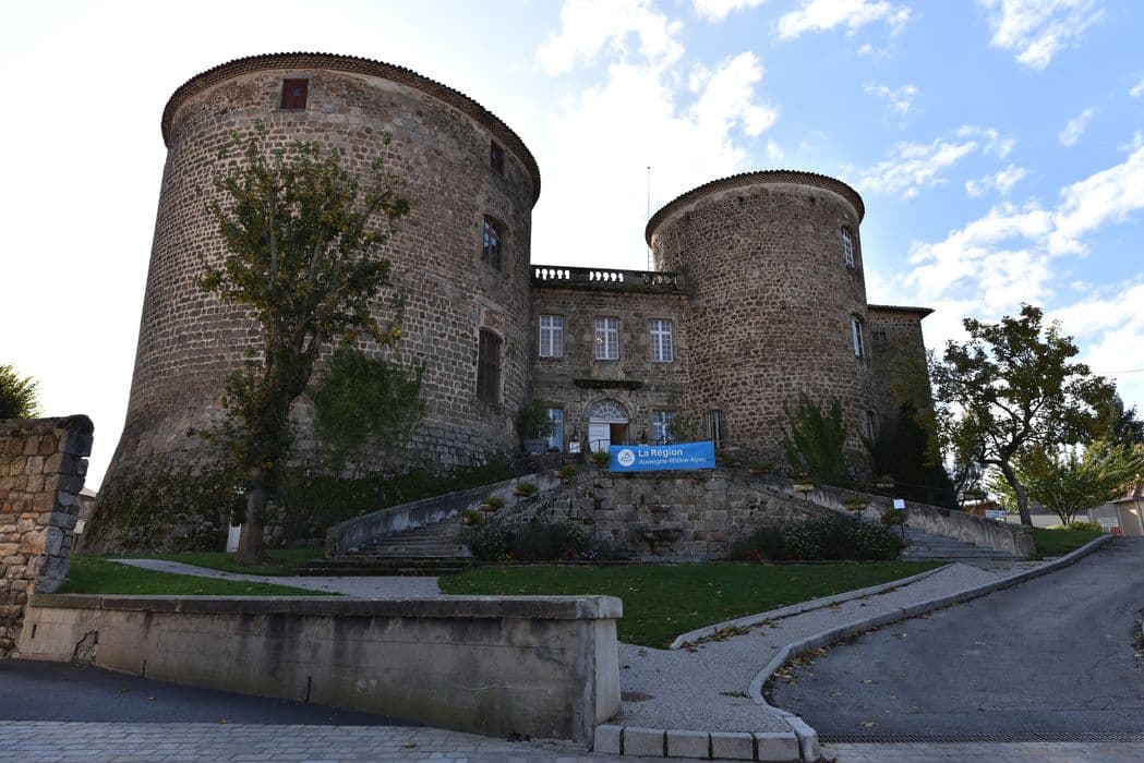Château mentionné dans les textes à partir du 13e siècle, mais existant sans doute avant. L'évêque du Puy, Guillaume de la Roue, en fait l'acquisition en 1270. En 1448, l'évêque Jean de Bourbon y fait construire une grosse tour, amputée de 17 mètres à la Révolution, selon la tradition. Les évêques du Puy y fixent leur résidence d'été au 17e siècle. Monseigneur de Béthune fait apporter au château de nombreux embellissements (boiseries, sculptures, statues). Ces éléments ont entièrement disparu à partir de 1793. £Le château apparaît comme un vaste quadrilatère encadrant une cour intérieure, dont l'intérêt se marque par la façade avec ses tours massives. Le corps de bâtiments relie les deux tours, ajouté dans son état actuel au 17e siècle. De la même époque datent la grande galerie méridionale, le grand escalier avec sa rampe en fer forgé, laquelle semble dater du 18e siècle. Au 18e siècle, les jardins du château abritaient un musée lapidaire groupant des sculptures gallo-romaines, des fragments de l'ancienne cathédrale du Puy entre autre.