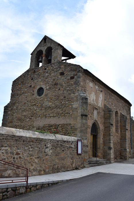 Ancienne chapelle castrale du 13e siècle, devenue église paroissiale, remaniée au 15e siècle. C'est un sanctuaire à nef unique et abside à pans coupés dont la construction peut remonter au 13e siècle, modifié au 15e par l'agrandissement de la fenêtre axiale de l'abside, et surtout par l'apport de voûtes sur croisées d'ogives de profils très fins. Il possède un décor de motifs végétaux, des croix de consécration, des litres funéraires avec ou sans armes et du faux appareil à la voûte. Les clefs de voûtes portent des éléments figurés : figure de femmes dans l'abside, et blasons. La technique de ces différents éléments semble s'étendre du 13e au 17e siècle. Quatre niveaux de peintures murales superposés. Le niveau inférieur comprend un ton ocre rouge sur les voûtes du 15e siècle, un faux appareil ocre rouge et brun entourant les deux baies du choeur et dans les ébrasements, huit croix de consécration inscrites dans des carrés, un grand arbre en bistre sur le mur sud. Le deuxième niveau présente une litre funéraire faisant le tour de la chapelle et portant des armoiries ; le troisième, un fragment de monument funéraire à la base du mur sud (fin 16e) ; le quatrième, de grosses feuilles d'acanthes rouge et jaune bordées de noir.