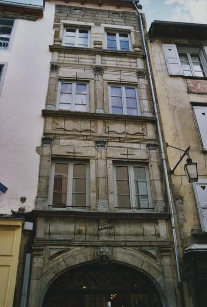 Maison datée de 1650 présentant, au rez-de-chaussée, une boutique avec arc orné d'un mascaron. Les trois étages sont à deux fenêtres encadrées de pilastres doriques et corinthiens.