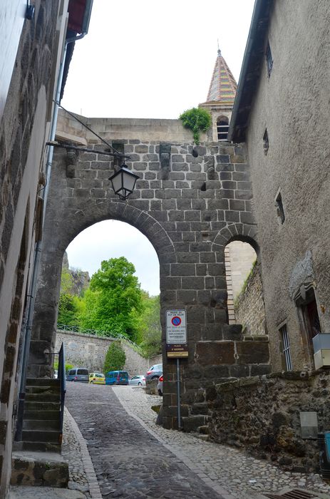 Les évêques du Puy, comtes du Velay, fortifièrent leur ville par une double enceinte, l'une entourant la ville, l'autre dite "enceinte du cloître" protégeant la cathédrale et le palais épiscopal. La tour Pannessac fait partie de la première enceinte. La porte Saint-Georges fait partie de la seconde. Elle donne passage à la rue du même nom. Il subsiste une assise de très gros blocs, peut-être romains, qui se trouvent à environ deux mètres du sol. Sur l'un des côtés, une poterne donne l'ancien sol indiqué également par l'emplacement des gongs. L'épaisseur du rempart est d'environ 1m30. A l'intérieur, une rangée de corbeaux portant dalles augmente la largeur du chemin de ronde. La largeur de la porte est de 3, 22 mètres. Cet ouvrage a été construit en 1237.