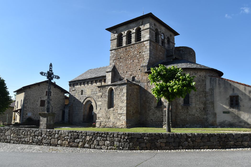 Petite église romane avec choeur reconstruit au 15e siècle ainsi que les transepts qui sont une adjonction de cette époque. Le clocher semble roman. Il était orné sur chaque face de deux grosses têtes saillantes dont quelques-unes subsistent encore. La porte a sans doute été refaite au 14e siècle. L'archivolte présente des billettes ; le tore du premier rouleau s'orne de deux figures de chouettes en guise de chapiteau. A la croisée du transept, coupole romane à huit pans sur trompes.