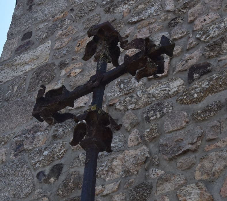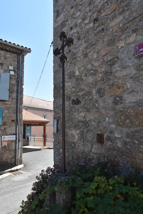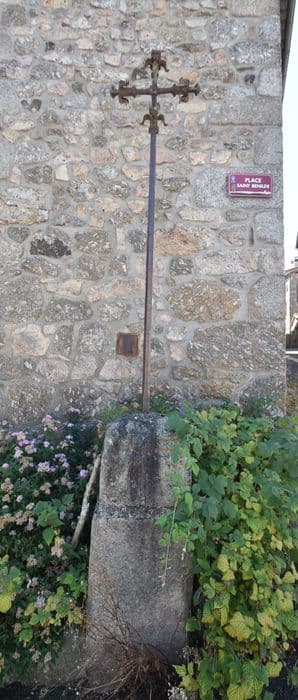 Croix en fer forgé datant, d'après la tradition, de l'époque du siège de Saugues par les Anglais. L'ouvrage est formé d'une tige droite et unie, de forme quadrangulaire. La croix proprement dite est formée de croisillons aux extrémités desquels se trouvent quatre pétales surmontés d'un bouton. Aucune présence de statuettes.