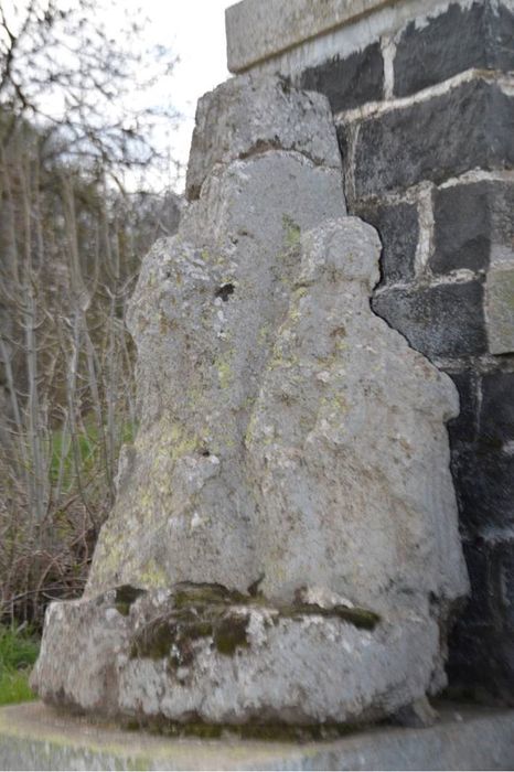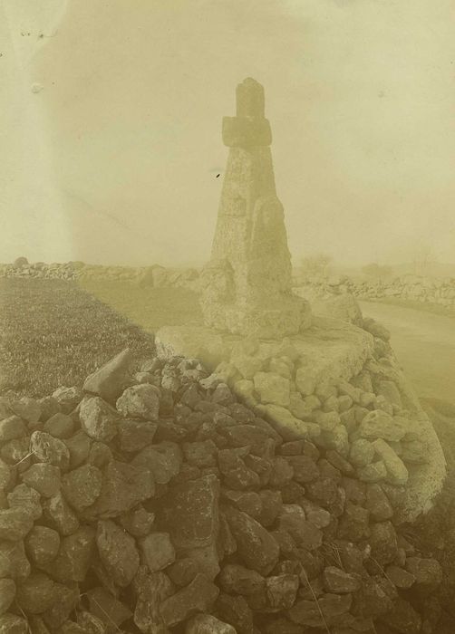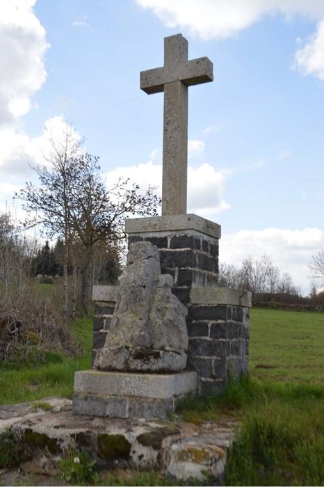 Sur un fût ayant la forme d'une pyramide tronquée et allongée est placé un fragment de croix avec un rudiment de fleuron au sommet et dont le croisillon gauche manque. A la face antérieure du fût est figuré un buste de femme avec son voile. Sur la face de gauche, une tête d'homme barbu, puis, au-dessus, un cartouche avec lettres illisibles. Sur la face de droite, une autre tête d'homme à peu près du même modèle. La tradition locale la dit très ancienne.