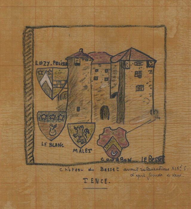 La seigneurie du Besset apparaît dans les textes au milieu du 13e siècle. Au 14e siècle, construction de la grosse tour carrée. A l'époque des guerres de Religion, le château a un rôle important dans la luttre contre les protestants dans la région de Tence. La liaison entre la tour et le corps de logis semble dater du 18e siècle. Au 19e siècle, d'importants travaux sont réalisés, avec l'agrandissement du corps de logis rectangulaire, dont la surface a été doublée, et l'adjonction, entre le donjon et la tour, d'un corps de bâtiment qui assure la liaison directe entre les deux. £Le château comprend un donjon carré (partie primitive) situé sur l'angle nord-est d'un corps de logis rectangulaire, cantonné sur l'angle sud-est d'une grosse tour ronde. Tandis que la tour est occupée par l'escalier en vis et que le donjon constitue à chaque niveau une pièce unique, le corps de logis est divisé en quatre pièces sensiblement équivalentes, à l'exception de la salle voûtée du rez-de-chaussée. A l'intérieur, aucun décor notable.