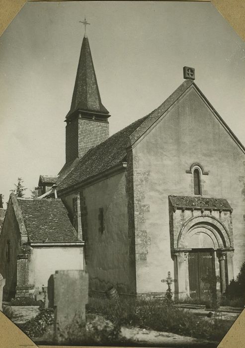 Eglise romane de l'ancien diocèse d'Autun, composée d'une nef sans collatéraux, plus large au sud dans sa partie occidentale, couverte d'un berceau brisé, raccordée à une abside en hémicycle. Deux chapelles ont été ajoutées au 15e siècle. Une flèche octogonale de charpente, couverte de bardeaux, datée du 16e siècle, se dresse en avant de l'abside.