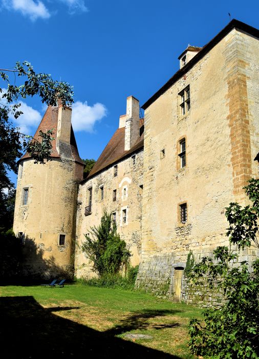 Exemple de construction médiévale agrandie à l'époque classique. Une importante campagne de travaux permit au 18e siècle de réunir au gros donjon carré des 14e-15e siècles un long bâtiment englobant l'ancien logis à tourelle dont il était séparé. Le donjon a conservé l'essentiel de ses dispositions et de son décor. Le nouveau logis fut doté de larges ouvertures et de décors intérieurs dignes d'une demeure de plaisance. Parc à l'anglaise aménagé dans l'ancienne enceinte, agrémenté de plantations, pièces d'eau, portails en pierre et ferronnerie et communs.