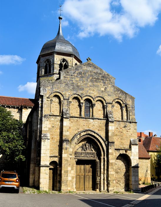 Edifice de style roman auvergnat, dont la nef est voûtée en berceau, les bas-côtés en quart de cercle, l'abside et les chapelles latérales voûtées en cul-de-four. Clocher gothique. La façade présente un tympan sculpté d'une Cène pouvant remonter au 13e siècle. La coupole et le clocher qui la surmonte sont une transition entre le 12e et le 13e siècle.
