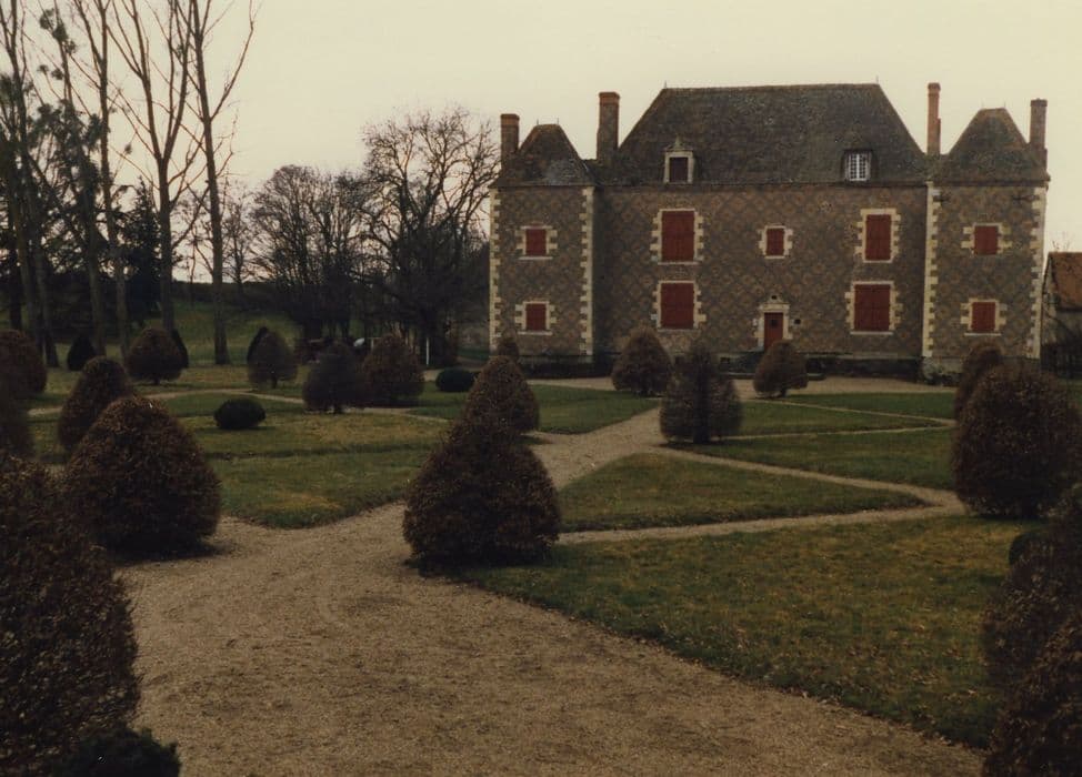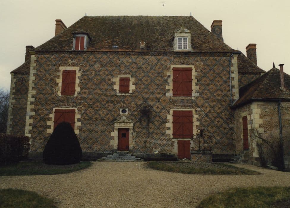 A l'origine, le lieu était occupé par une motte féodale. Edifice du 17e siècle composé d'un corps central quadrangulaire, flanqué de deux avant-corps carrés sur les angles nord. La porte d'entrée à un vantail est encadrée de deux pilastres aux chapiteaux ornés d'une petite tête. Ils portent un entablement composé d'un architrave à trois fasces, d'une frise à trois métopes ornés de figures guerrières casquées et empanachées. Ces figures alternent avec deux niches contenant des soldats romains aux lances dressées. La façade nord est la réplique de la façade antérieure pour sa partie centrale. Le chambranle de la porte est ici orné d'une alternance de triglyphes et de métopes composés de trophées guerriers. A l'intérieur, trois pièces du rez-de-chaussée sont ornées. La salle-à-manger possède une cheminée monumentale engagée, dont une partie scellée dans l'entablement représente Cérès et Bacchus avec leurs attributs. Masques, têtes ailées et chutes de fruits décorent modillons et jambages de la hotte. La cheminée se trouvant dans le salon devait être similaire à la précédente, mais fut modifiée pour obtenir un foyer plus petit. Le salon est également orné de quatre panneaux de peintures murales représentant des paysages dans des cadres flanqués de frises de rinceaux sur fond bleu. Deux panneaux plus larges représentent des scènes pittoresques : une église avec un étang dans lequel nagent des canards ; un château sur une falaise ; porte de ville... Les murs du petit salon était entièrement peints à l'origine des scènes dessinées dans des médaillons qui étaient intégrés dans un réseau d'entrelacs et d'arabesques formant une composition générale. Ils représentent des scènes champêtres de même inspiration que celles du salon. Le château illustre le type du petit château bourbonnais à cour intérieure bordée de communs et cantonné de tours-pavillons, ainsi que celui des constructions en briques à croisillons de la Sologne bourbonnaise. Les détails sculptés qui encadrent les portes d'entrée, les lucarnes et les cheminées monumentales, en font l'exemple d'une gentilhommière du début du 17e siècle dans la région.