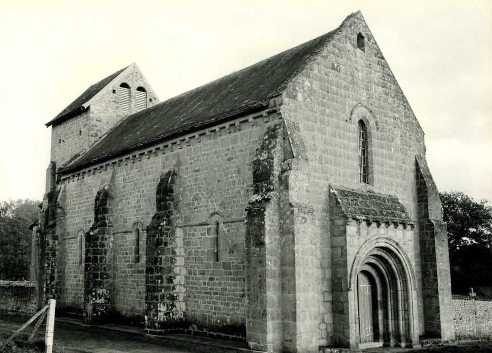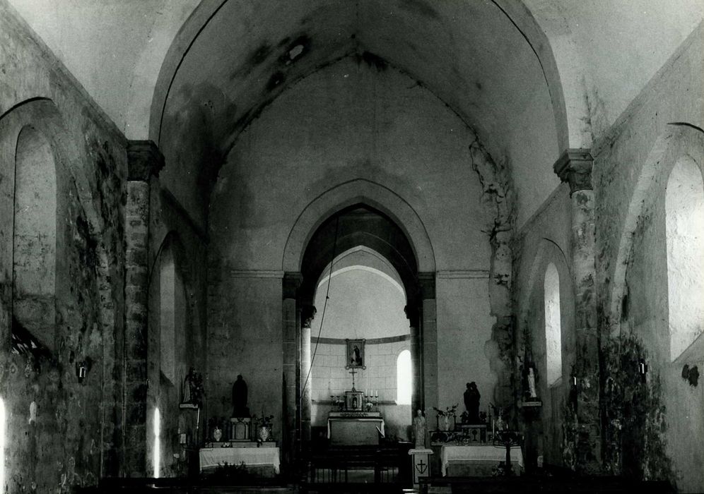 Edifice de la fin de la période romane composé d'une nef à trois travées reliée à l'est par deux travées de moindre largeur, à une abside en hémicycle, comprise extérieurement dans un massif de maçonnerie à trois pans. Trois fenêtres en plein cintre s'ouvrant au milieu des pans éclairent l'abside. La travée droite orientale est recouverte d'un berceau et séparée de l'autre, couverte d'une coupole sur trompes, par un doubleau brisé, à double rouleau, reçu par des colonnes sur dosserets. L'arc triomphal brisé est supporté de même façon. Un berceau brisé, sur doubleaux, couvre la nef. Le bas des murs latéraux est renforcé d'un arc brisé aveugle par travée, retombant sur des pilastres au-dessus desquels s'élèvent les colonnes sur dosserets destinés aux doubleaux et que couronnent des chapiteaux à feuilles plates. La porte de façade, en plein cintre, est dépourvue de tympan. Elle est percée dans un avant-corps que couronne un glacis souligné d'une ligne de corbeaux. Elle est encadrée d'une archivolte de trois boudins qui se relient, sans l'intermédiaire de chapiteaux, aux colonnes des piedroits. Le clocher carré a été tronqué pour être recouvert d'un toit en bâtière.