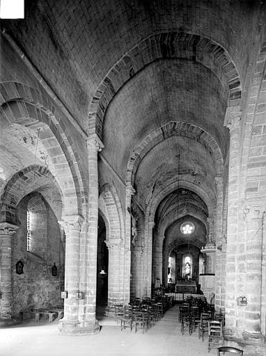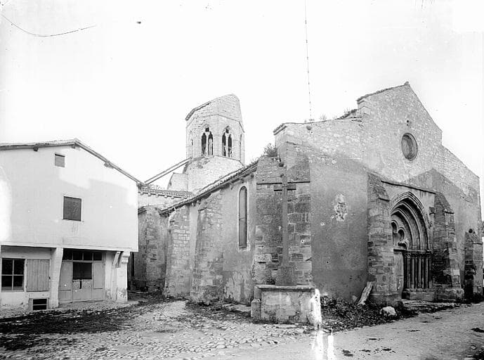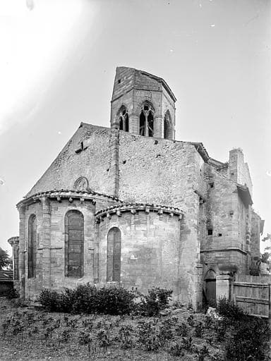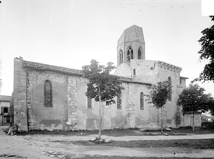 Edifice du milieu du 12e siècle, composé d'une nef de quatre travées avec bas-côtés, de deux transepts avec clocher et flèche en pierre sur la croisée, d'un choeur d'une travée avec bas-côtés et d'un sanctuaire de plan semi-circulaire flanqué de deux absidioles de même forme. La nef, les transepts, la travée du choeur sont couverts par des berceaux d'ogives. Les bas-côtés présentent des voûtes d'arêtes. La travée de la croisée est voûtée en ogive sur nervures. L'abside centrale et les deux absidioles sont voûtées en quart de sphère. La chapelle qui s'ouvre sur la dernière travée du bas-côté gauche de la nef, et la tourelle d'escalier dans l'angle du transept nord et du bas-côté du choeur, sont de la fin du 15e siècle. Le clocher et la flèche ont été rebâtis à la fin du 13e siècle. Il ne subsiste aujourd'hui que l'étage du beffroi, de plan octogonal, et un tronçon de la flèche. Au transept sud, restes de corbeaux de machicoulis établis au début du 16e siècle, qui faisaient partie de la défense de la ville. Les chapiteaux des piles sont ouvragés.