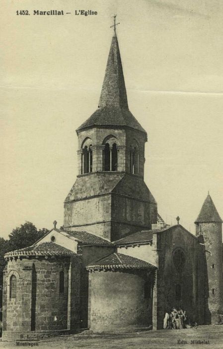 Ne subsiste de l'église romane primitive que le transept sur lequel s'ouvrent deux absidioles en hémicycle encadrant une abside de même plan précédée d'une travée de choeur. Des berceaux couvrent le choeur et les croisillons. La croisée est couverte d'une coupole sur trompes. Le clocher, du 14e siècle, présente un étage octogonal, relié à une base carrée par des glacis d'angle. Il est percé sur chaque face de deux hautes baies en tiers point, encadrées par des colonnettes.