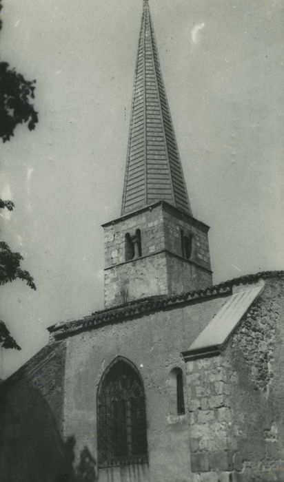 Eglise composée d'une nef romane à trois travées, suivie d'un choeur allongé, flanqué de bas-côtés, et à chevet plat. Cette dernière partie de l'édifice a été modifiée au 15e siècle. Clocher à flèche (14e siècle) de pierre appartenant à une famille de flèches analogues située dans une bande de territoire orientée ouest/est, et dont le perfectionnement paraît s'être étendu de l'ouest vers l'est. La flèche repose sur un court clocher barlong contenant le beffroi.