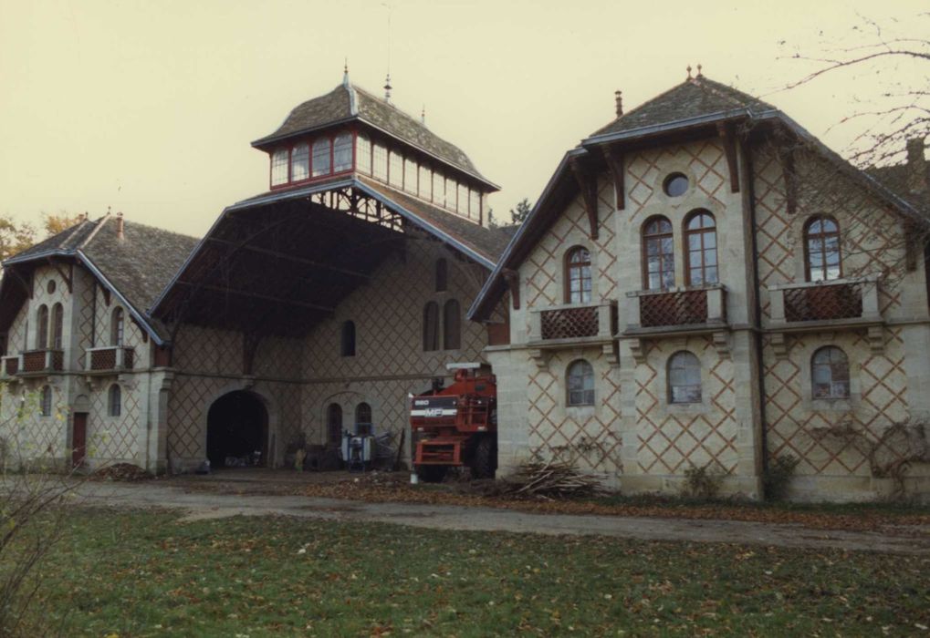 Edifice éclectique en brique rouge, de plan asymétrique, de la fin du 19e siècle, construit dans le goût anglais par les architectes Jean et René Moreau, à la place d'une maison de maître démolie pour l'occasion. Le projet initial est conçu par Jean Moreau, et poursuivi en 1899 par son fils, René, en collaboration avec le commanditaire, Stephen Durieu de Lacarelle, qui revenait alors d'un voyage en Ecosse. Il témoigne du style anglicisant des années 1900. Le parc a été redessiné à la même époque dans le même esprit. Les décors intérieurs illustrent également le choix de l'éclectisme, et ont été exécutés par le sculpteur Thiébaud (1895-1898) et le peintre décorateur Detanger. Grand escalier de style Renaissance en marbre rose (1895) ; les grand et petit salons sont séparés par des colonnes à chapiteaux corinthiens et décorés de stucs et de boiseries dans l'esprit 18e siècle. La bibliothèque-fumoir, le cabinet de travail, la salle-à-manger aux boiseries inspirées du 18e siècle (dessus de portes à scènes mythologiques) ont été récupérés en partie au château de Logère. Des scènes peintes décoratives proviennent du château de Montriboux. A l'étage, les chambres ont été décorées et meublées chacune dans un style différent (Louis XIII, Louis XIV, Louis XV, Louis XVI, Empire).