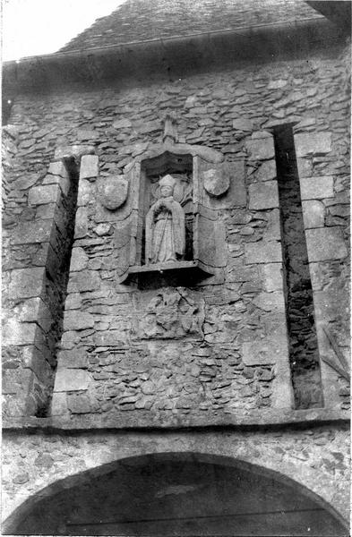 Porte dont la toiture en tuiles domine deux grosses tours découronnées, élevée après 1497 par Pierre de la Fin, vingtième abbé de l'abbaye de Bénisson-Dieu, qui avait obtenu le droit de clore le bourg. La façade est ornée d'une niche avec, en-dessous, les armoiries de l'abbé dans un cartouche. Deux autres écus se présentent de chaque côté de la niche. La porte était surmontée d'une chambre, aujourd'hui à usage de mairie, autrefois utilisée pour la manoeuvre d'une herse et d'un pont-levis dont les emplacements sont demeurés visibles. L'une des tours contient l'escalier de pierre en spirale conduisant à cette chambre haute. La porterie a conservé sa toiture primitive couverte de tuiles vernissées polychromes.