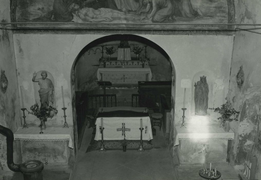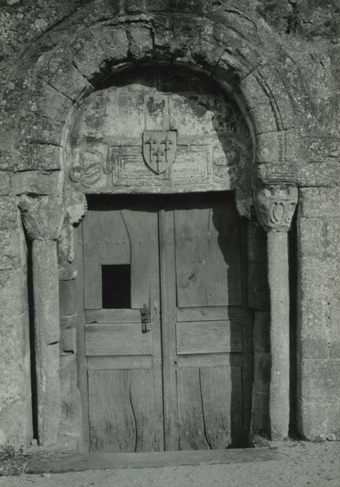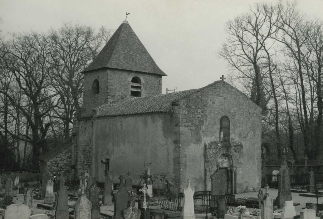 Reconstruite au 12e siècle et composée d'une nef unique de deux travées, d'une courte travée de choeur, voûtées en berceau, et d'une abside voûtée en cul-de-four, l'église porte témoignage, par son portail occidental, de l'existence d'un sanctuaire antérieur à l'époque pré-romane. Le tympan porte un décor à entrelacs, altéré à une époque ultérieure par l'incrustation d'une pierre armoriée. Le chapiteau de droite montre un décor de pommes de pin ou de grappes de raisin très stylisées. Les entrelacs ainsi que le tracé en fer à cheval de l'archivolte peuvent laisser supposer que ce portail remonte à l'époque carolingienne. Le clocher date du 17e siècle. L'intérieur porte un décor peint néo-roman.